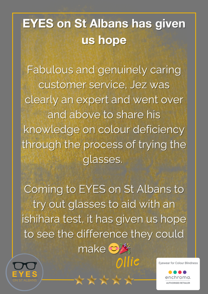 We were the first in the UK to offer in-person appointments too – a service that we still offer. Whilst you can check whether EnChroma might help you online, there’s truly nothing like experiencing it for real – and we give you plenty of time to try them out, visit other local shops, our community garden and, for about 9 out of 10 customers, experience colours they’ve never seen before.