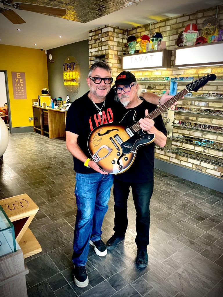 Simon gifted one of his oldest guitars to the shop, a Hagstrom Viking 1967 (A favourite of Elvis) Jez’s birth year for added poignancy. These days Simon can be found at his recording studio retreat in Portugal Supertone Sonic Lab https://supertone.eu/home with his wife Suzy, making music, being a master mixing craftsman, drinking wine & creating awesome food…! In 2009 Simon wrote a song about Jez ‘Brother’ : https://youtu.be/t6aOyzt2qKA