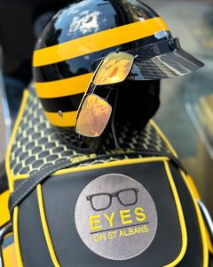 If you’re in any doubt, you’ll recognise the yellow stripes, the EYES logo, the helmet to match, and probably a bit of a grin. Because let’s be honest – if you’re going to whizz around St Albans delivering stylish specs and optical hugs, you may as well do it in proper style.